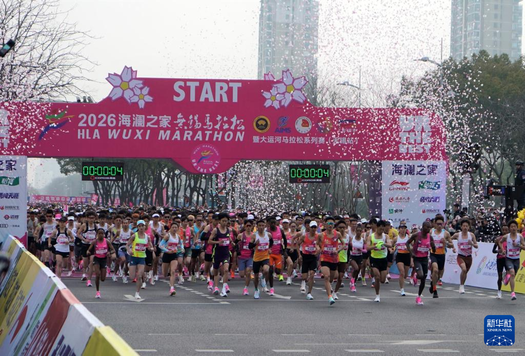 3月22日,2026无锡马拉松在江苏省无锡市滨湖区鸣枪开跑。