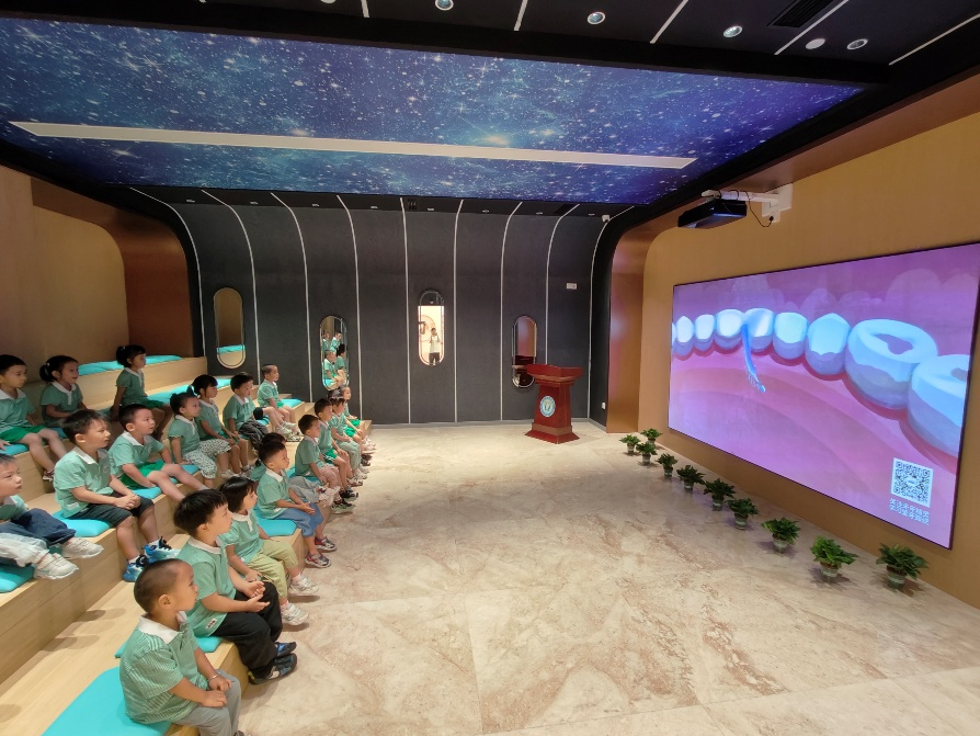 作为探索之旅的收官之站,“悦趣”区以轻松舒缓的氛围,让孩子们在互动中自然内化护牙知识。这一区域注重情感化设计,通过核心体验深化学习成果。
