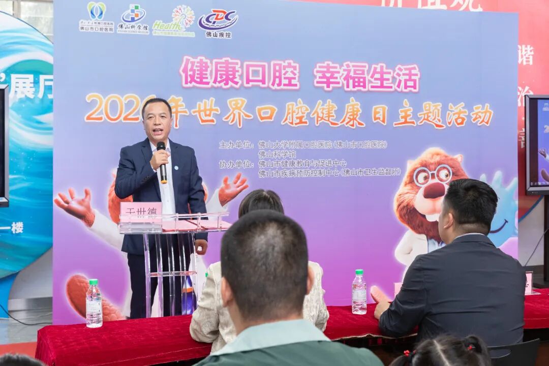 活动伊始,佛山大学附属口腔医院(佛山市口腔医院)·佛山市牙病防治指导中心党委书记于世德致辞,他深入阐释了口腔健康与全民健康的内在联系关系,并呼吁社会各界携手并进,共同构筑口腔健康知识的普及之桥。