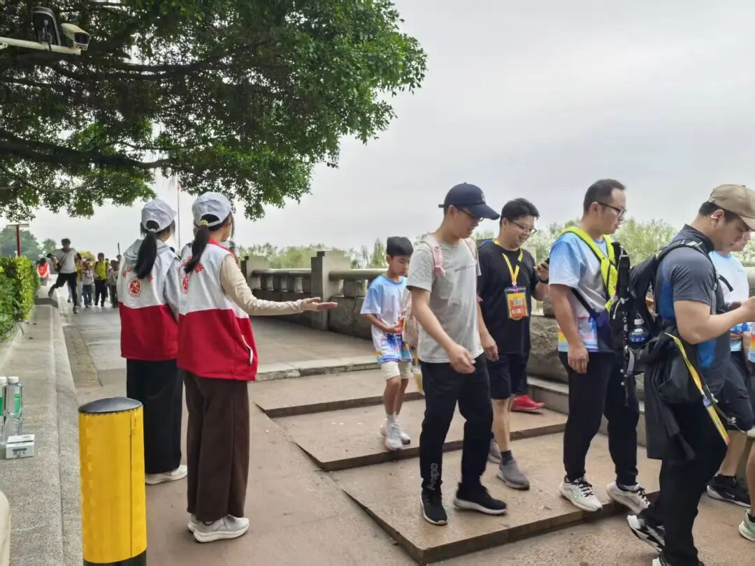 从起点到终点,沿途关键路口、补给站点、爬坡路段、签注点位,处处可见志愿者们忙碌的身影:他们手持指引牌,耐心解答徒步者疑问,清晰指明前行方向,让每一步都更有方向。