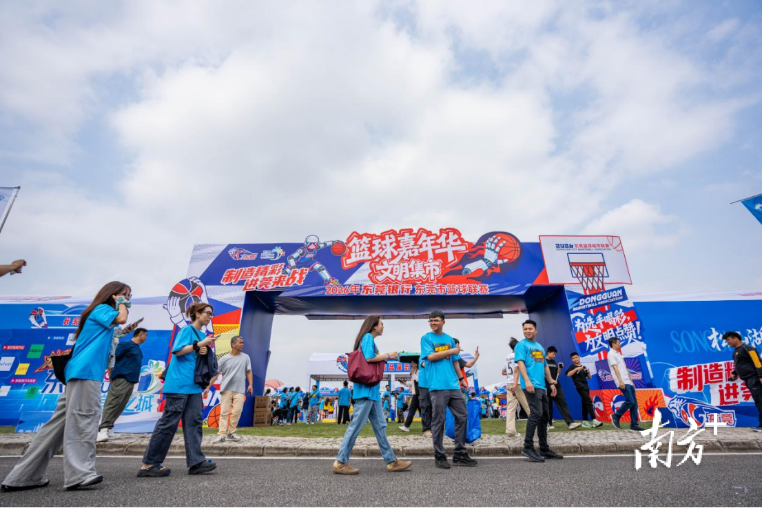 下午两点,阳光正好,东莞篮球中心草坪上,东莞为球迷举办了一场“制造业大集”。
