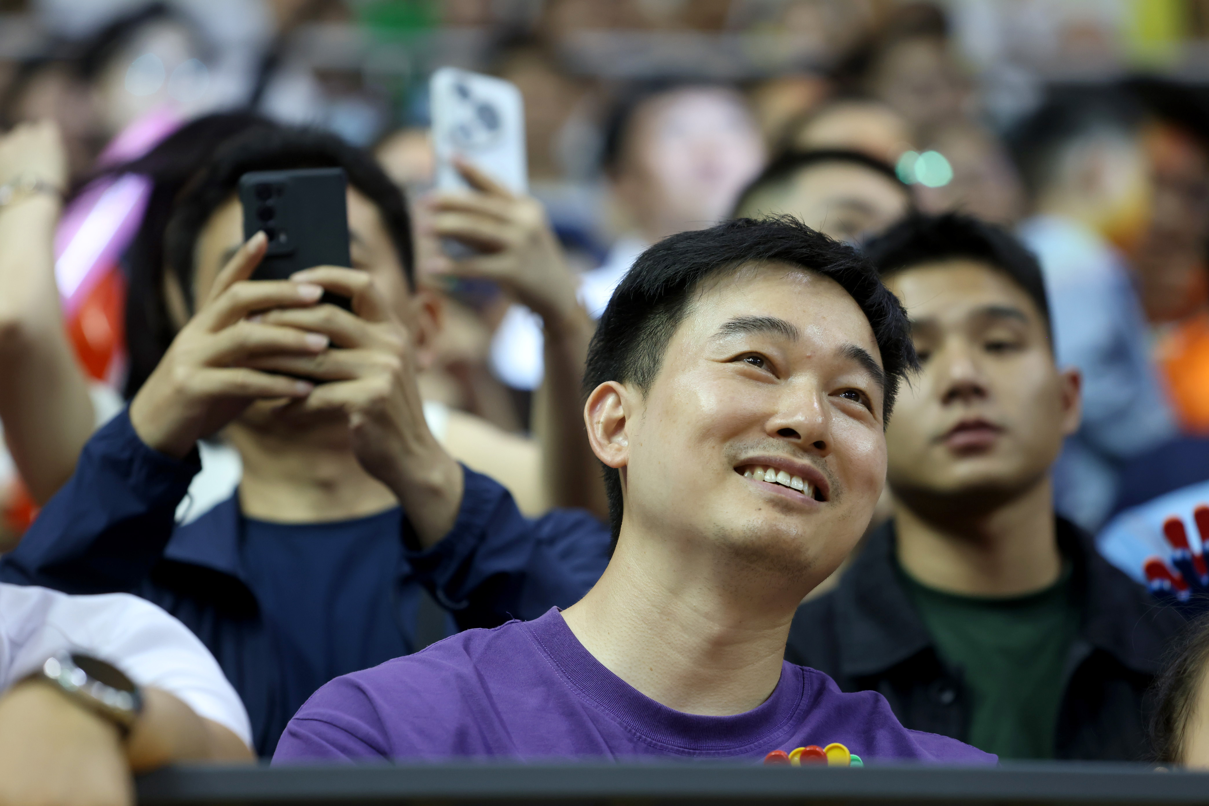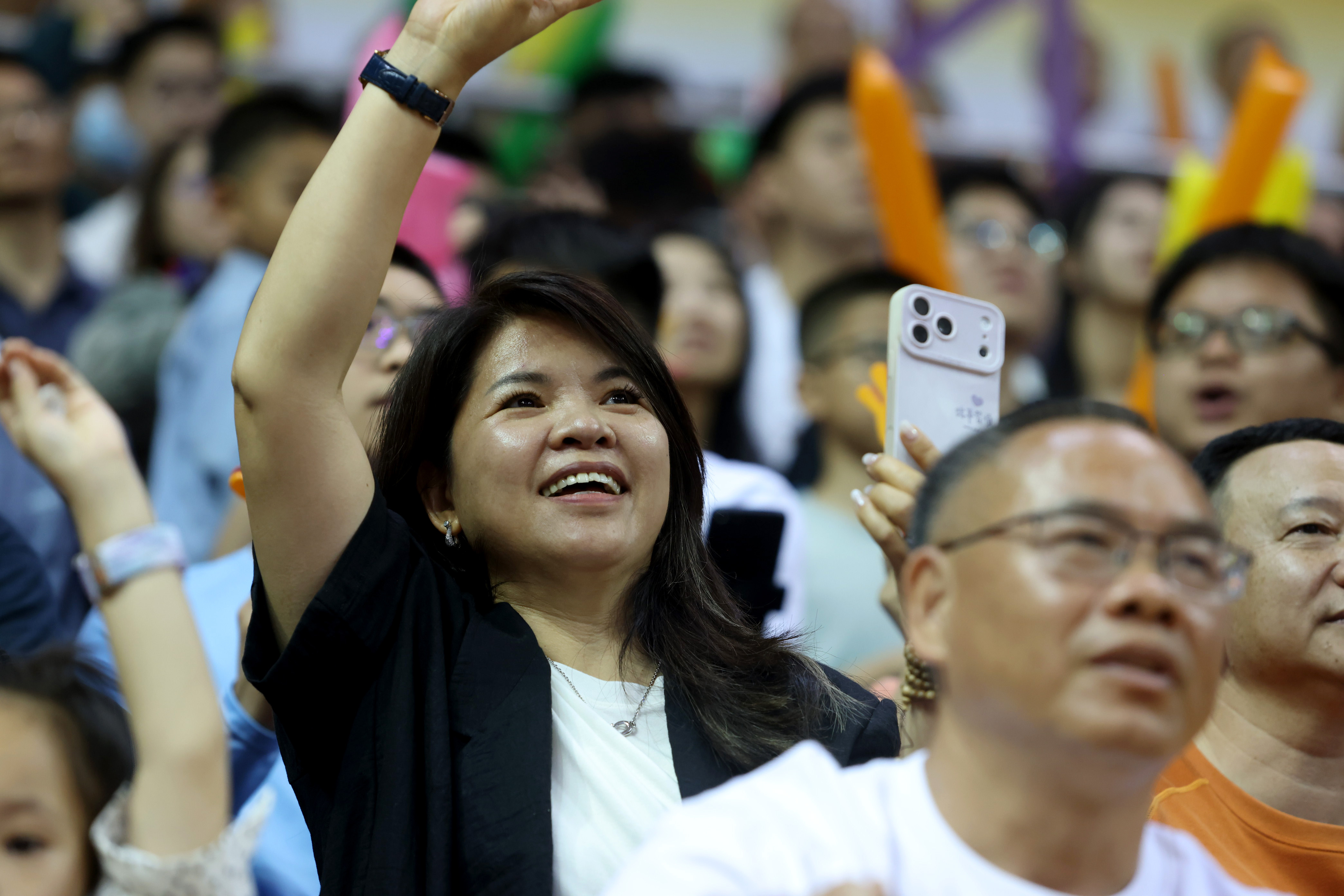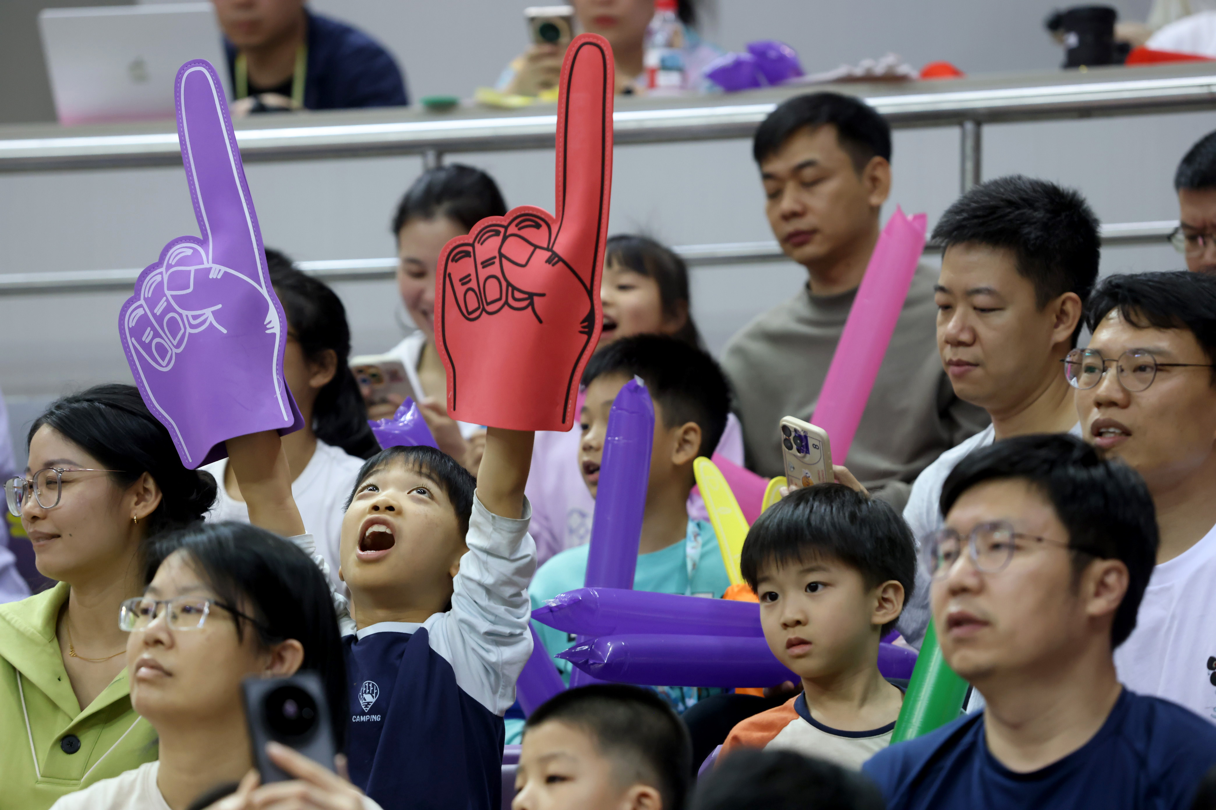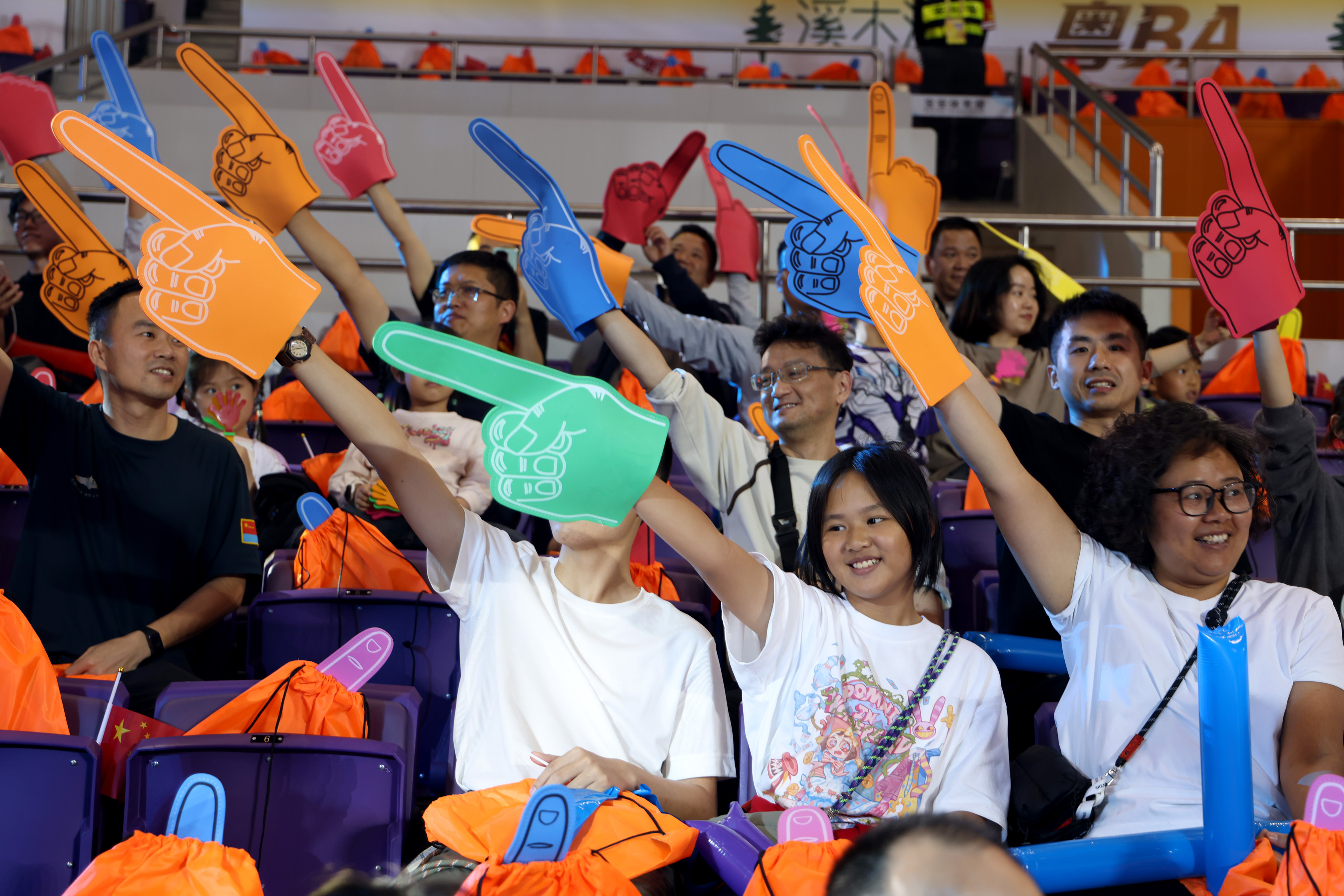 上半场结束,深圳队以44比35暂时领先。中场休息时,场馆内灯光璀璨,现场DJ火力全开,众多球迷挥舞手幅、点亮手机闪光灯,将看台汇成一片星光海洋,“加油”的助威声浪此起彼伏。