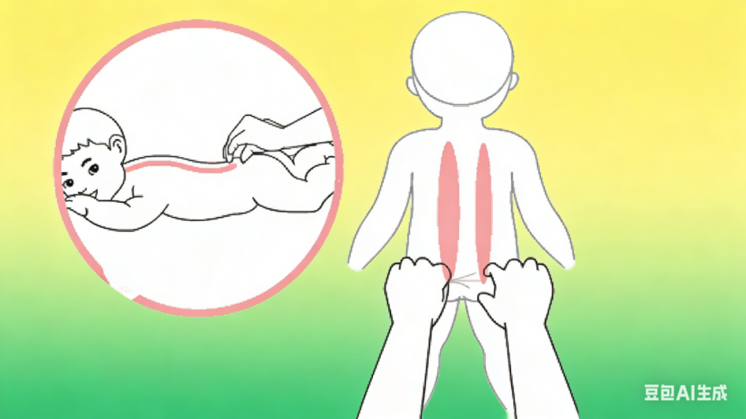 让孩子趴着,用双手拇指和食指捏起脊柱两侧皮肤,从尾骨捏到脖子,每天捏3-5遍。能激活督脉阳气,推动气血运行,改善积食和睡眠。