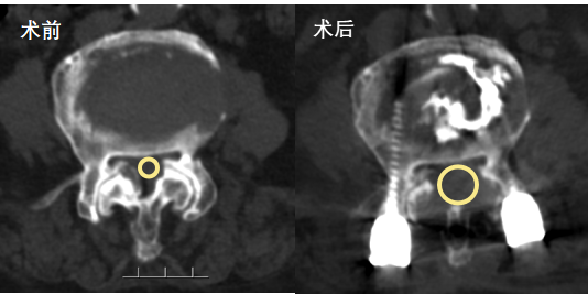 手术由骨伤一科冯学烽主任与骨伤二科郭锋副主任联合主刀,先经2个小切口为骨盆置入3枚空心螺钉固定,再通过背部2个2.5cm小切口,完成腰椎减压、内固定及骨水泥加强操作,全程出血少、创伤小,减压效果显著。