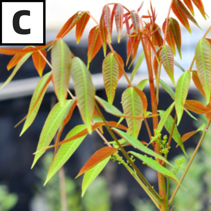 C 是漆树芽芽,皮肤接触就能严重过敏,误食有致命风险。