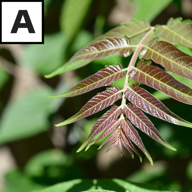 A 是臭椿,有小毒,误食可能恶心、腹泻、呕吐。