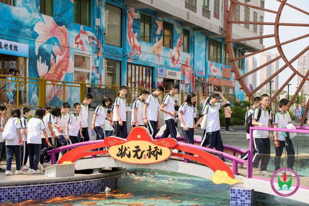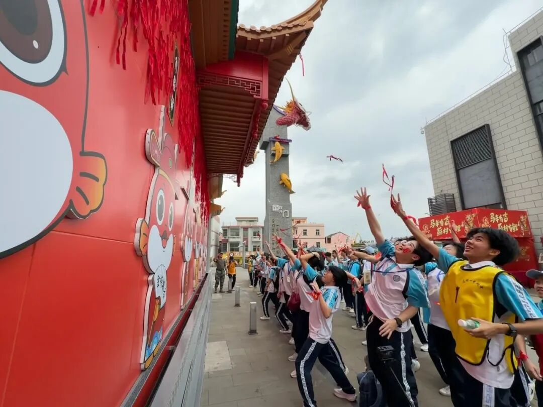 部分学校走出校门,来到荷城蘇村锦鲤文化街区,借助锦鲤“鲤跃龙门”的美好寓意,祝愿学子在中考战场披荆斩棘,取得佳绩。
