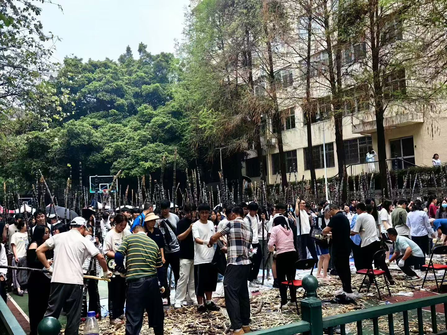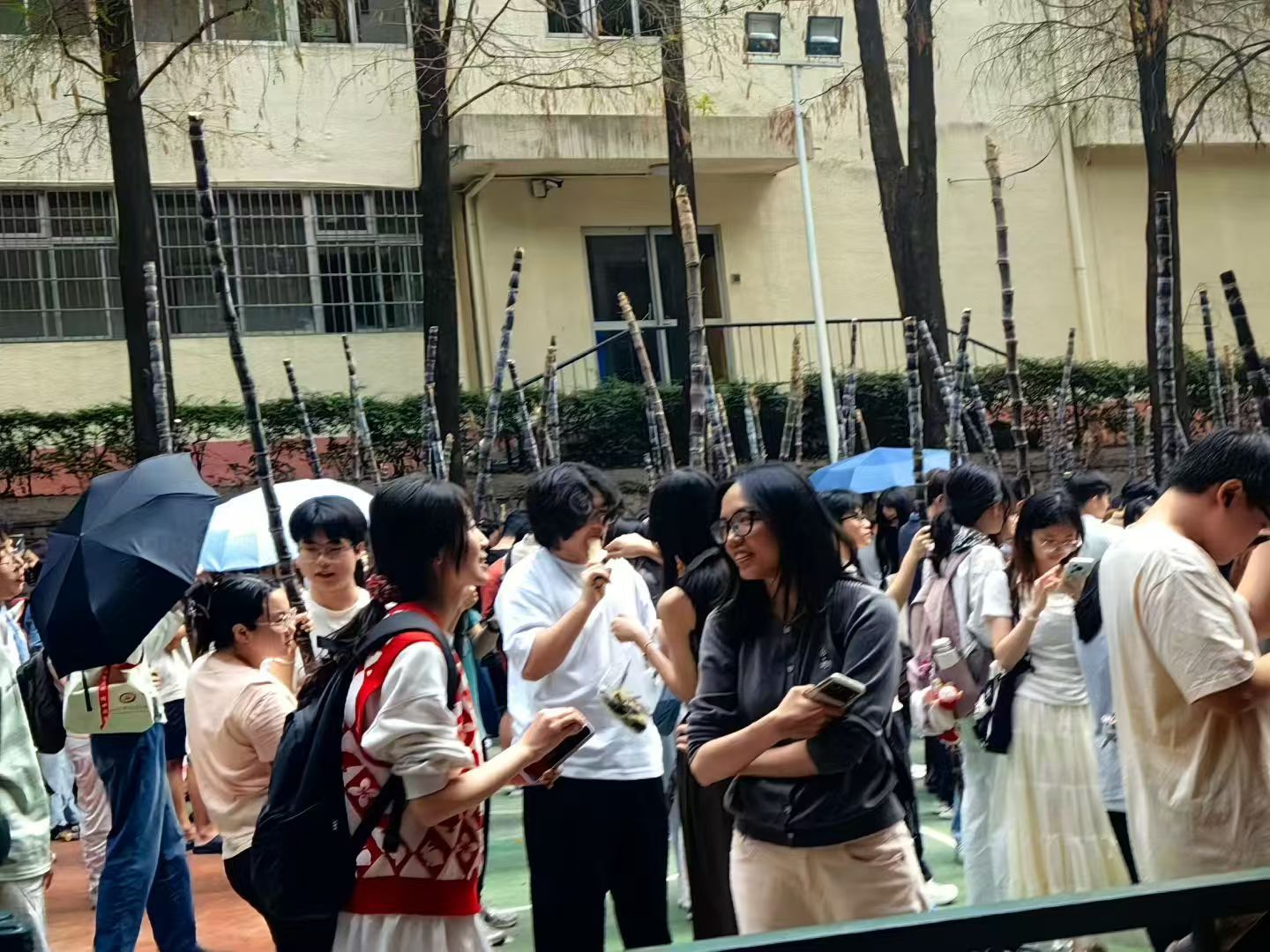 广州高校免费为学生发放甘蔗。(图源网络)
