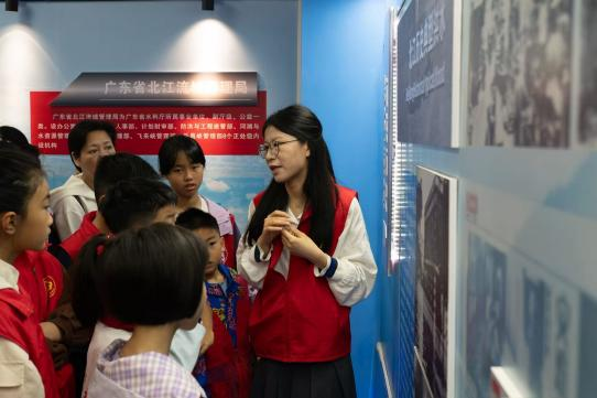志愿者们有序走进北江大堤展示馆,沉浸式探秘北江水利文化与百年水闸魅力。展馆通过图文展板、实物模型、多媒体设备,完整梳理北江大堤建设史、芦苞水闸百年历程与防洪功能,系统科普水安全、水生态、水文化、水经济核心知识,全方位展示北江流域治理成果。讲解员结合水闸实际功用,用通俗语言讲解水利工程核心价值与生态治理知识,志愿者们驻足观察、踊跃提问,在沉浸式学习中感受水利工程磅礴力量;家长们同步引导孩子树立护水意识,让环保理念潜移默化深入人心。