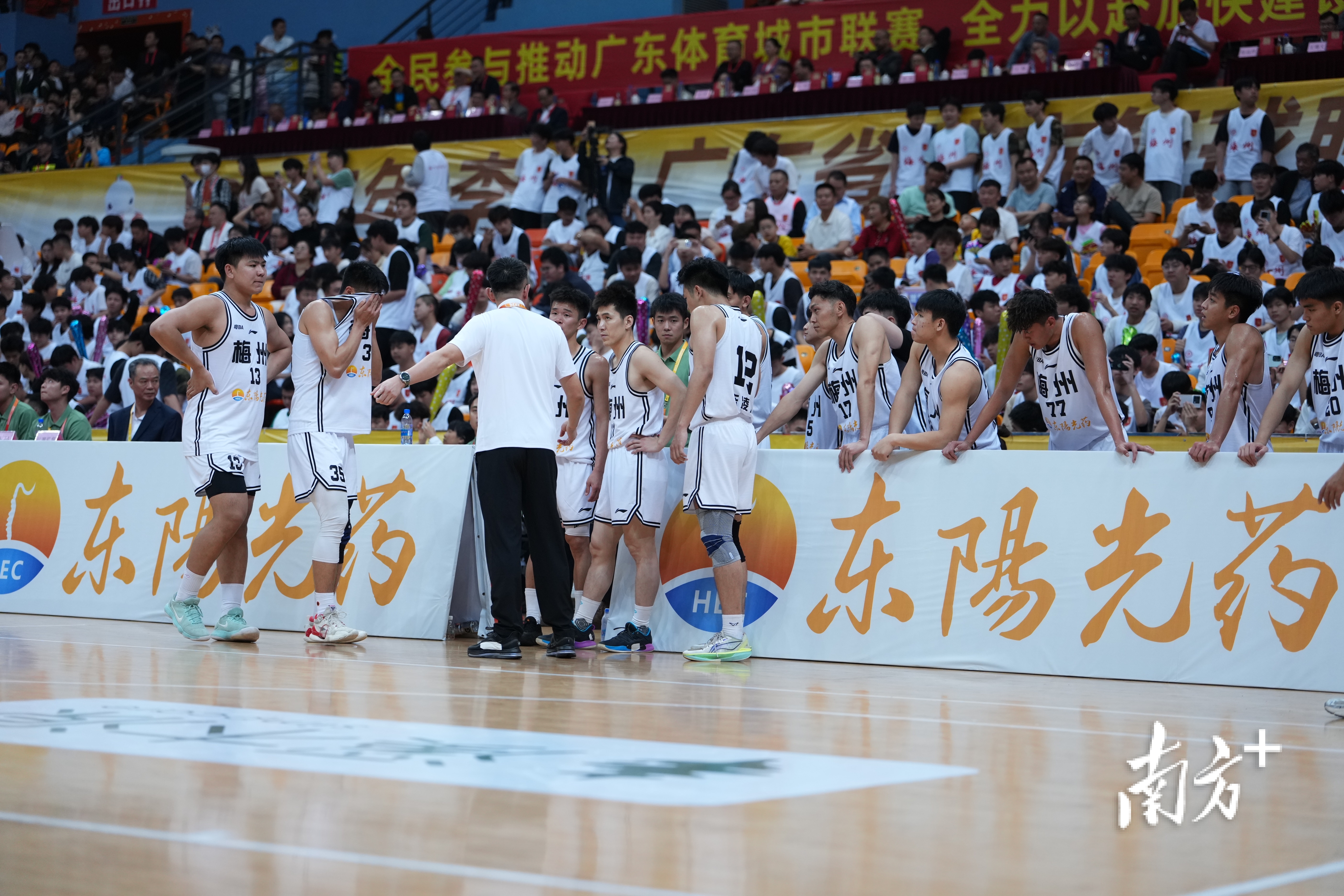 次节比赛,东莞队提升防守强度,给对手造成不小的压力,梅州队申请暂停。暂停回来,梅州队的失误较多,被东莞队抓住并上篮打进。虽然比分落后,但气势不能落后。梅州主场氛围火热,球迷加油助威呐喊声此起彼伏,竞技体育的拼劲儿满溢全场!上半场比赛结束,东莞队50:31继续领先梅州队。