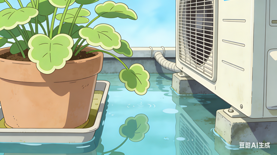 定期清理雨水井、下水道口、排水沟,防止堵塞积水;及时清理空调外机接水盘处积水。