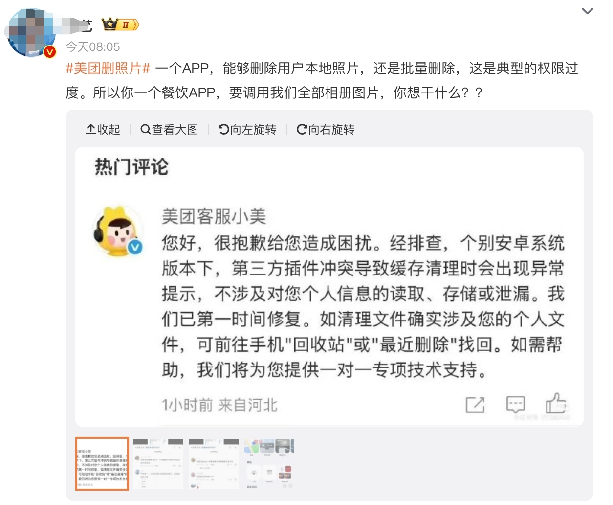 安卓用户图片被删?美团客服称约百余人受影响,将协助找回并赔偿