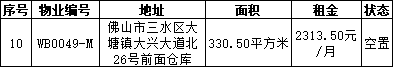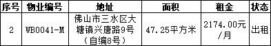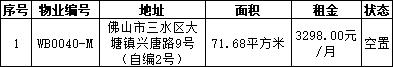佛山市三水区国盈资产管理中心有限公司受委托,对佛山市三水区大塘镇兴唐路9号(自编2号)等10个物业进行公开招租,现将有关事项公告如下: