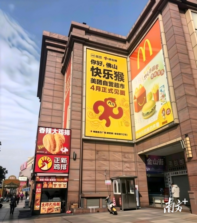 “你好,佛山!快乐猴,4月正式见面!”最近,在佛山禅城老牌商业体东方广场,来自美团的大型广告牌大张旗鼓地宣传开业信息,十分显眼。