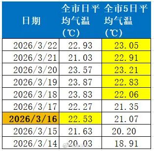 3月29日,阴天到多云,局部有阵雨,气温22℃~29℃。