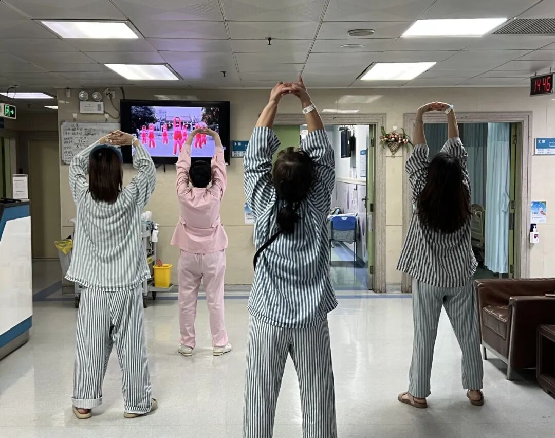 妇科手术患者术后常面临腹胀、排便困难、下床活动延迟、切口恢复慢等困扰,而长期、规律、有效地练习八段锦,能有效促进腹腔血液循环,增强胃肠蠕动,减少术后腹胀、便秘等并发症;温和的肢体活动可预防下肢静脉血栓,加速身体代谢,帮助患者更早下床活动,缩短康复周期。相较于高强度运动,八段锦动静结合、安全无负担,由护士带领、全程陪伴,让患者在轻松的氛围中主动参与康复,真正实现“快速康复、舒适康复”。