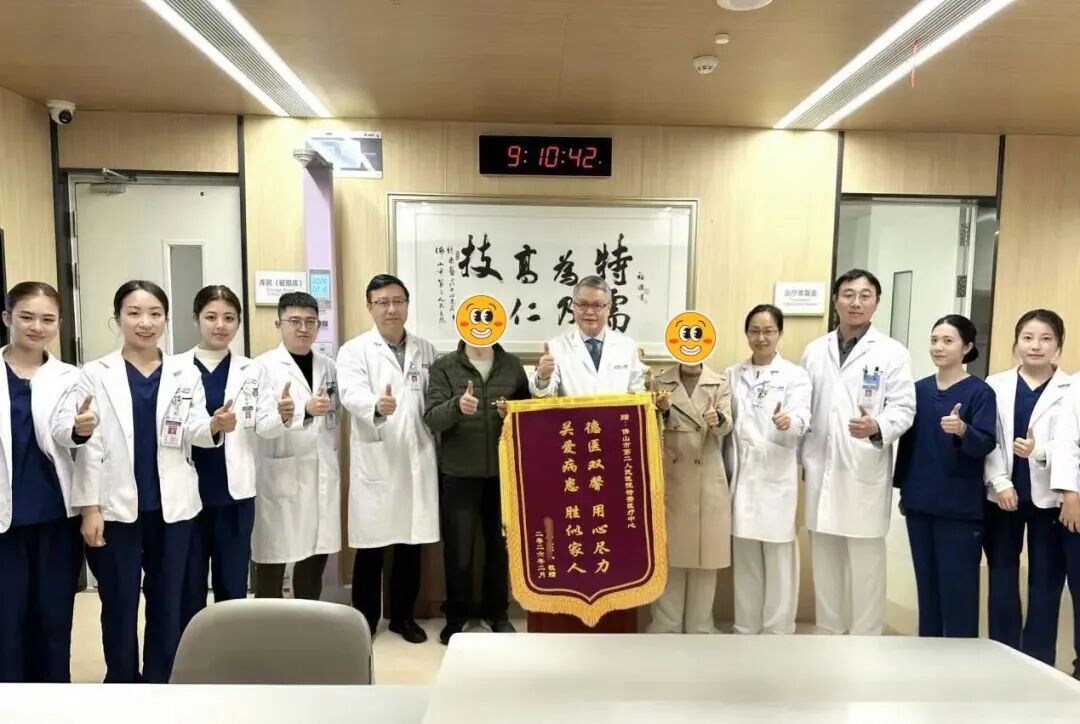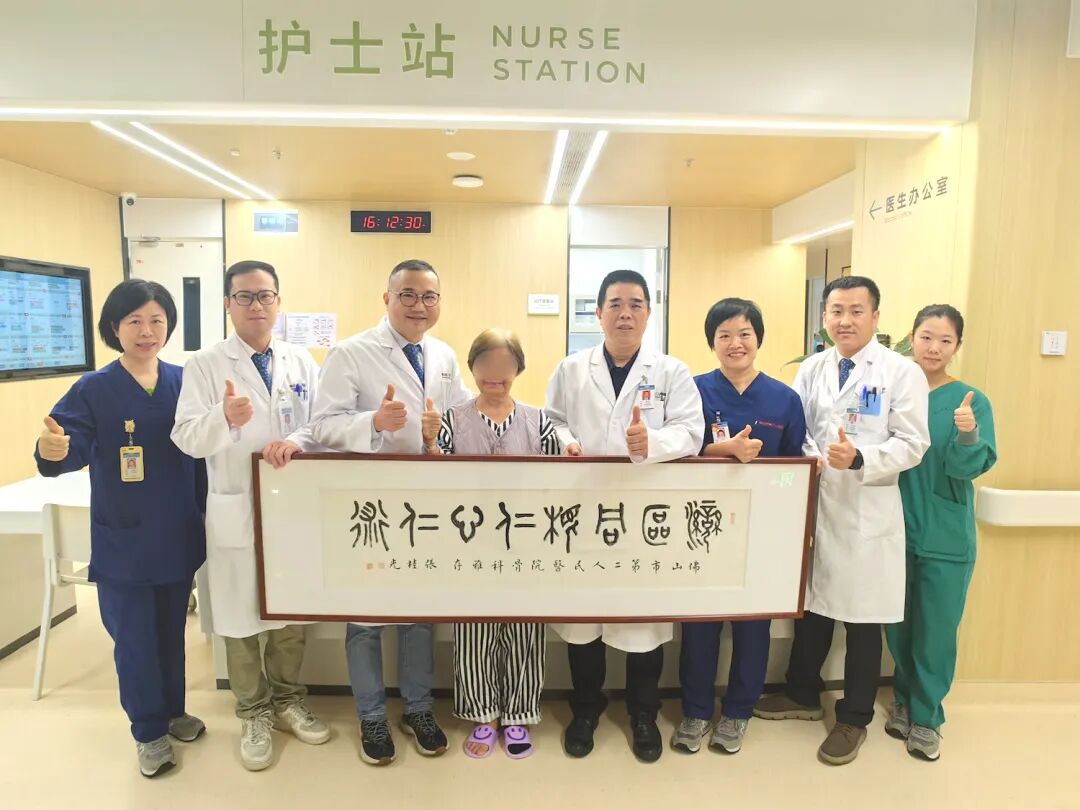 香港89岁的何女士回乡祭祖时不慎骨折,绿岛湖院区骨科团队为她实施人工股骨头置换术,术后次日即可下床行走。出院时,家属专程送来锦旗,盛赞“湾区同根,医术仁心”。