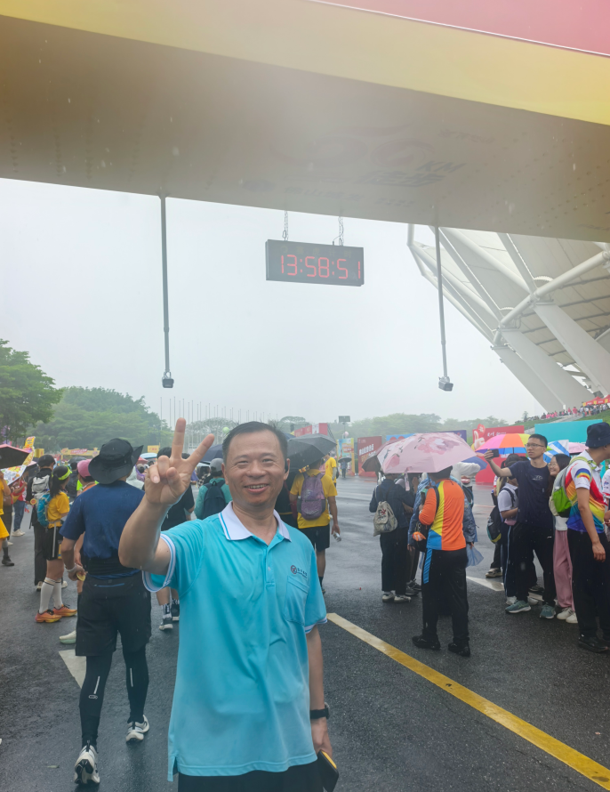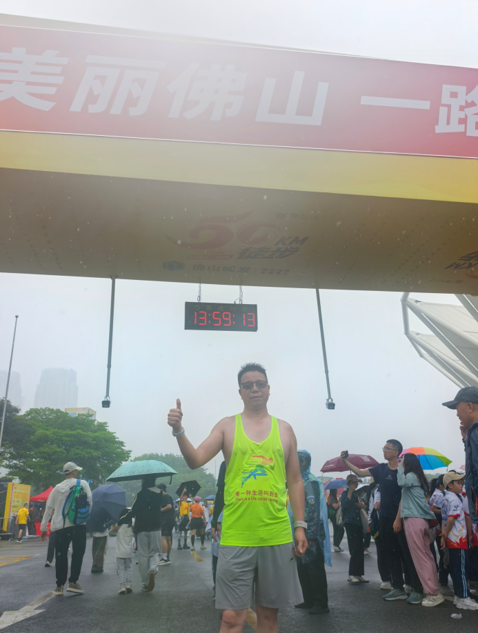 研发制造中心副总经理徐旺林和设备部经理杨辉波,作为企业代表中的领先人物,无疑是此次徒步的先锋。他们步伐稳健,眼神专注,在雨中坚定地朝着终点迈进,如同勇往直前的战士,以无畏的勇气和顽强的毅力为企业代表们树立了榜样。13:59:13,经历5小时29分,他们携手冲过终点线,他们用行动诠释了拼搏与坚持,成为了企业代表们心中的楷模,更是这次徙步中企业团队的第一名,激励着大家在企业的征程中奋勇向前,勇争第一的精神。