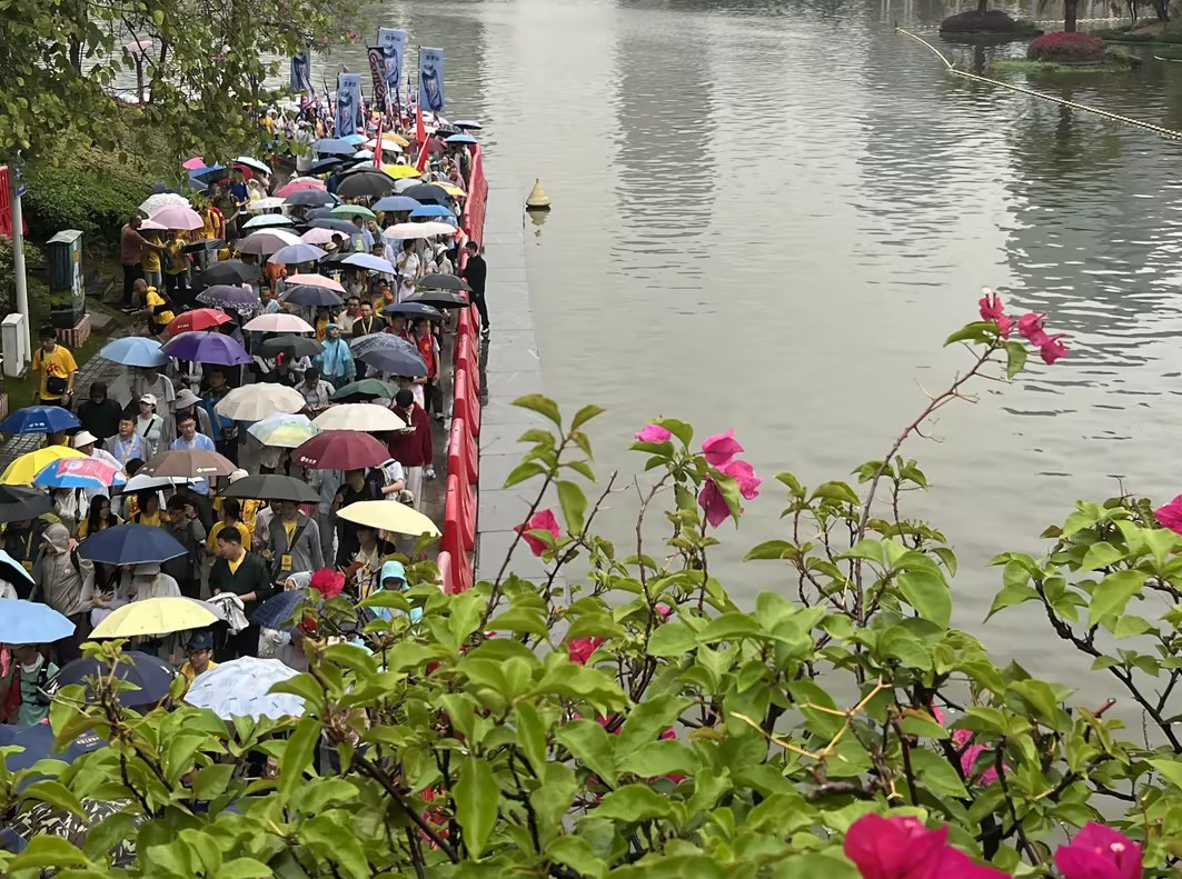 8:30,出发号令如激昂的战鼓响起,企业代表们组成的队伍浩浩荡荡地踏上50公里徒步征程。旗帜在雨中猎猎作响,仿佛是冲锋的号角,引领他们一路向前。他们步伐整齐,身姿挺拔,以昂扬的姿态展现出企业代表的卓越风采。