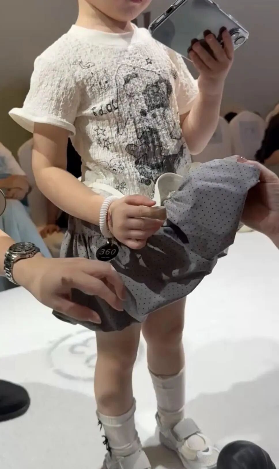 网传视频显示,看起来仅四五岁的女童穿着有裙边的泳衣,在T台上哭泣,而台下有人在触摸服装的过程中,将女童的裙边掀起,旁边有疑似工作人员在安慰。