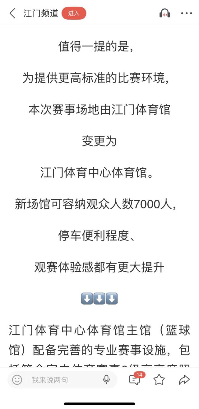 阿江说:“换换换,换到更大更新的江门体育中心体育馆。”