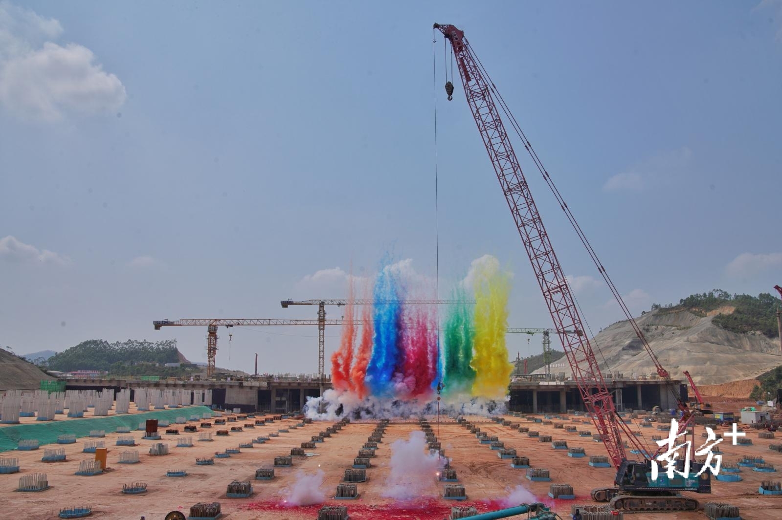 广州新机场将引入多条高铁打造综合交通枢纽,图为建设现场。