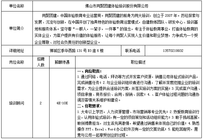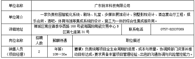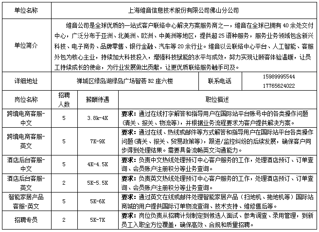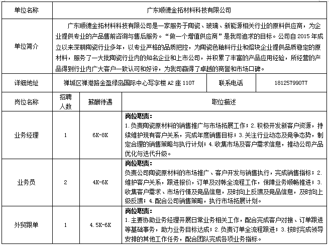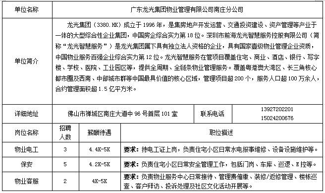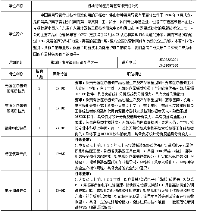 工程师、物业经理 业务员、客服、治安队员 …… 佛山市特种医用导管有限责任公司 中科诺(佛山)智能科技有限公司 南庄社区居民委员会 等多家企业及单位正在招人 上海维音信息技术股份有限公司佛山分公司 佛山新明纤维树脂制品有限公司 广东高盛电气制造有限公司 广东顺德金拓材料科技有限公司 中科诺(佛山)智能科技有限公司 广东锐丰科技有限公司 佛山市陶南一号陶瓷有限公司 佛山市特种医用导管有限责任公司 佛山市梓晨电子商务有限公司 佛山市同聚团建体验培训股份有限公司 广东龙光集团物业管理有限公司南庄分公司 广州海伦堡物业管理有限公司佛山禅城南庄分公司 南庄镇南庄社区居民委员会 扫描下方二维码 可查看招聘详情 ↓↓↓