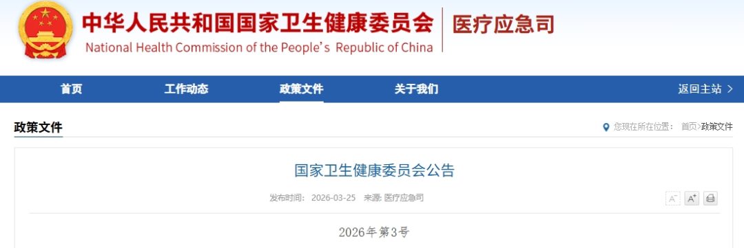 国家卫生健康委公告