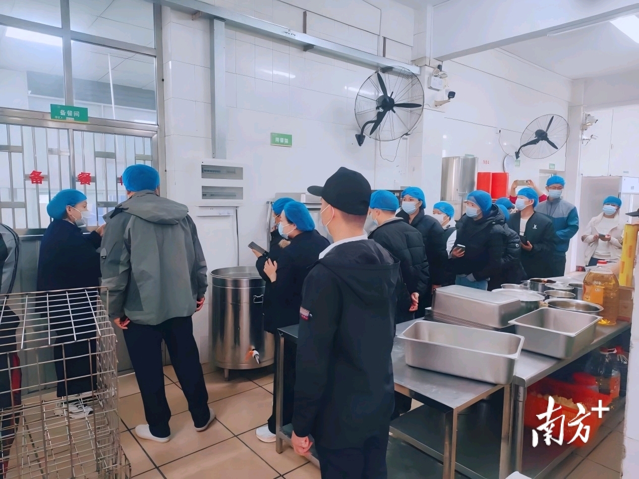 大南中学家委会成员检查食堂。 受访者 供图