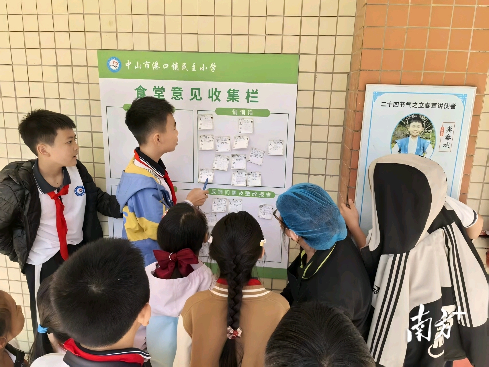港口镇民主小学食堂意见收集栏。 受访者 供图