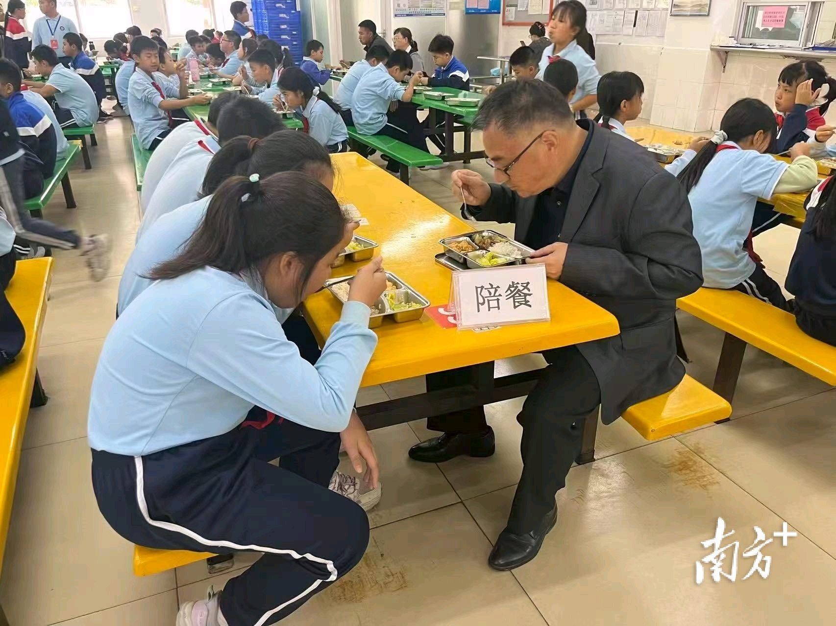 港口镇中心小学校长陪餐。 受访者 供图