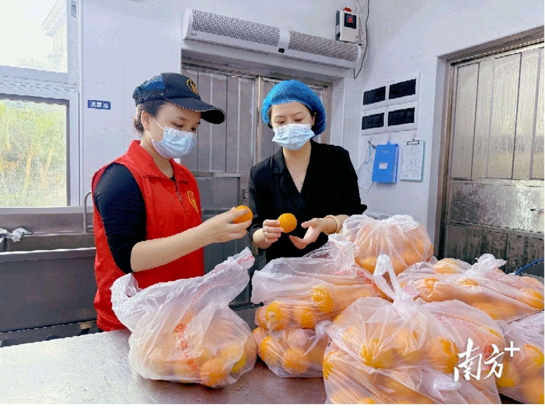中南小学食堂工作人员检查食材。 受访者 供图