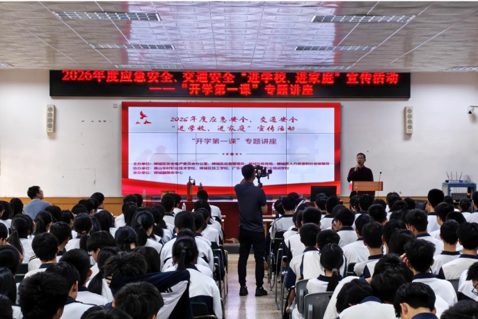 沉浸式实训护航 禅城区这堂“开学安全第一课”超有料! 春启新程,安全先行。为切实提升广大家庭、学生的安全意识和自防自救能力,共同筑牢社会安全防线,近日,禅城区应急管理局携手禅城区教育局、区人力资源和社会保障局,在佛山华材职业技术学校与禅城区技工学校举办了2026年度应急安全、交通安全“进学校、进家庭”宣传活动暨“开学第一课”专题讲座。 专题讲座中,讲师紧密围绕日常生活中的关键风险点,聚焦交通安全、防风防汛、火灾防范及应急避险等内容进行了系统、生动的讲解。为将理论知识转化为切实的防护技能,活动特别设置了防火帐篷模拟体验环节。在专业人员的指导下,两校学生分批进入模拟充满浓烟环境的防火帐篷,亲身体验“捂口鼻、低姿、沿墙、速撤”的火场逃生要领,并现场演示了灭火器操作流程和防毒面罩的佩戴方法。“通过实操演练,我真正掌握了火灾逃生和灭火器使用技巧,这比单纯听课更有收获。”禅城区技工学校学生代表说。 “模拟逃生体验太真实了!以前只知道火灾要弯腰捂鼻,实际体验后才明白保持秩序、辨别方向有多重要。”禅城区技工学校学生代表激动地说。校方表示,活动将专业装置引入校园,让安全教育从抽象理论变为具象实践,互动性强,为新学期安全教学开了好头。 本次活动的核心亮点在于“进家庭”。为推动安全知识从校园向家庭的深度延伸,构建“教育一个学生,带动一个家庭,影响整个社会”的安全教育链条,活动现场向所有参与者发放了《携手筑牢安全防线 共护学生平安成长——致家庭的一封信》。这封信涵盖了交通安全、居家及校园防火、防风防汛、地震避险等全面的安全提示,旨在通过学生和技工人员将实用的安全知识和理念带回家中,与家人共同学习、实践,实现安全教育的家校闭环传递。 本次专题讲座及实操体验活动吸引了两校共计300余名学生积极参与。通过理论宣讲+实操体验+家庭延伸的模式,开展安全宣传“五进”活动,有效增强了参与者应对突发事件的能力,并将安全责任的共识从校园拓展至家庭,为共建平安校园、和谐家庭奠定了更为坚实和广泛的基础。