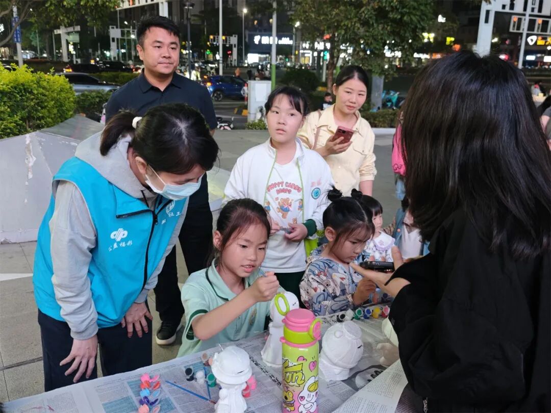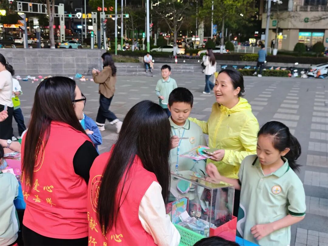 活动创新“带着孩子做慈善”理念,将慈善教育融入亲子互动。西江新城第一小学的学生在家长陪伴下化身“小小摊主”,热情推销自制手工艺品、闲置书籍与玩具。“这个石膏粘土是我亲手做的,卖的钱会全部捐给需要帮助的人!”一位小学生认真地向顾客介绍。质朴的话语、真挚的善举引得居民纷纷驻足、慷慨解囊,这在童心深处播撒了仁爱火种,涵养了崇德向善、助人为乐的文明新风。