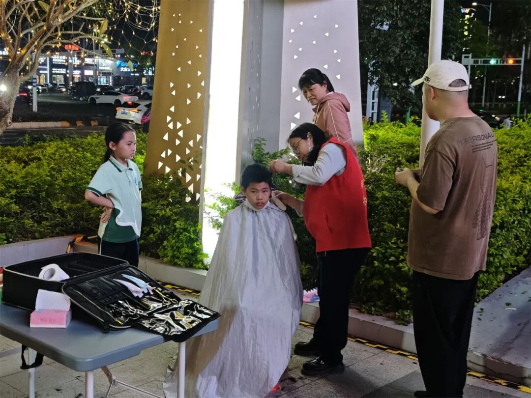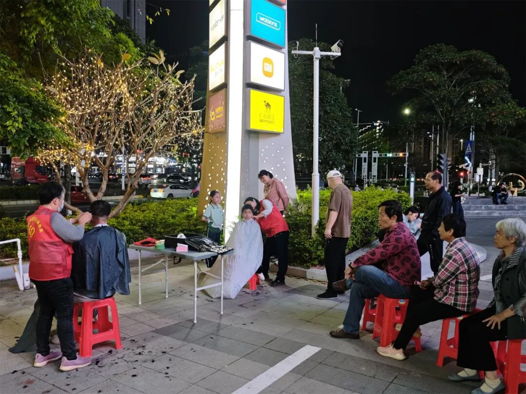 现场还设置义剪、石膏粘土手工制作、猜谜、套圈等丰富多彩的摊位。明爱友志愿服务队的理发师为长者免费修剪头发;广东职业技术学院拾柒社工工作室的大学生志愿者带领居民体验手工游戏,欢声笑语不断。“剪个头发,了解一下养老政策,还能带孩子做公益,一举多得!”居民李阿姨为活动点赞。