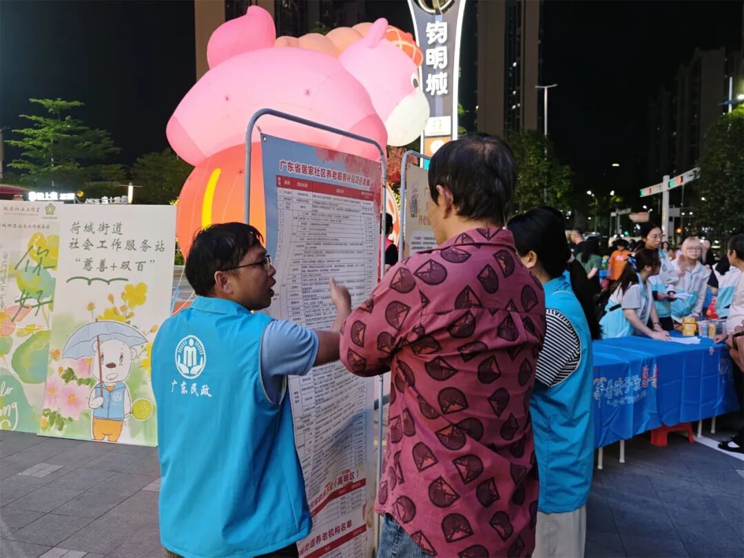 聚焦银发民生需求,活动现场专设养老消费券政策宣传专区,成为最热闹的摊位之一。街道公共服务办工作人员与“双百”社工化身“政策宣讲员”,手把手教群众申领、使用养老消费券。养老消费券是广东省政府面向中度失能以上老年人推出的惠民政策,符合条件的老人每月可领取800元政府养老消费券,用于在符合条件的养老服务机构购买居家、社区及机构养老服务,切实减轻养老负担,提升生活质量。街道社工站通过摆摊宣讲、现场答疑等方式,让惠民政策走出机关、走进群众。