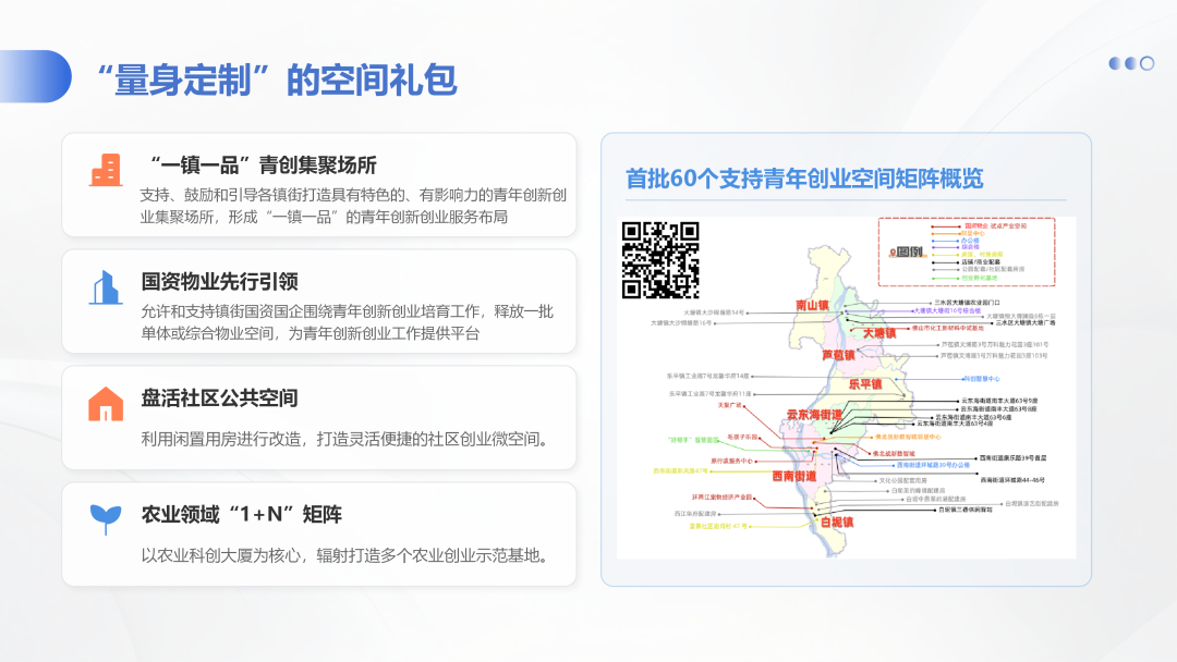 ☑空间礼包:解决用地难题,提供低成本、高品质的创业空间。