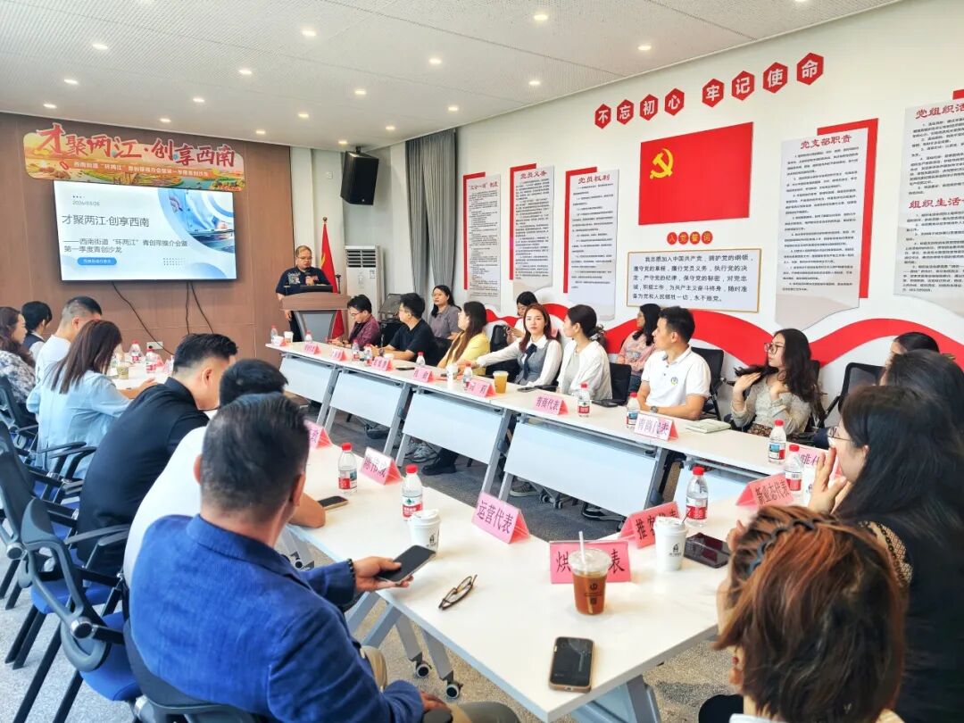 3月25日上午,“才聚两江·创享西南”——西南街道“环两江”青创带推介会暨第一季度青创沙龙在中建万城青创街区圆满举行。本次活动旨在贯彻落实“环两江”先行区建设部署,进一步优化青年创新创业生态,搭建政企沟通平台,激发青年人才活力。区人社局、西南街道有关领导及部门负责人,北江、河口社区党委书记,三大青创载体负责人及青年创业代表共约30人参加活动。
