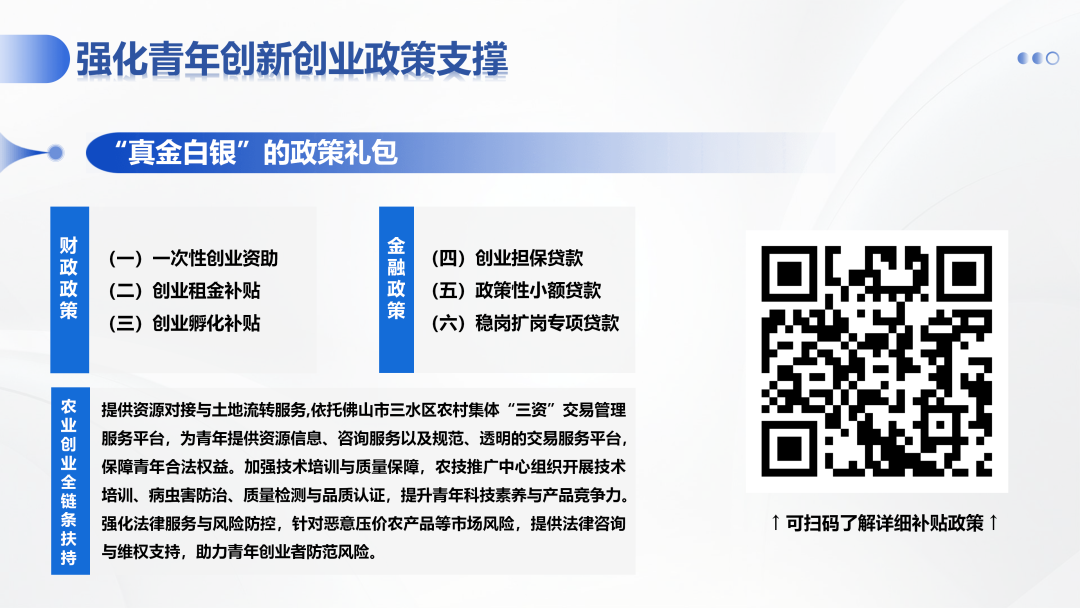 黄丽琼局长重点介绍了“创想未来,就在三水”三年行动计划,为青年创业者送上了诚意满满的“三大礼包”: