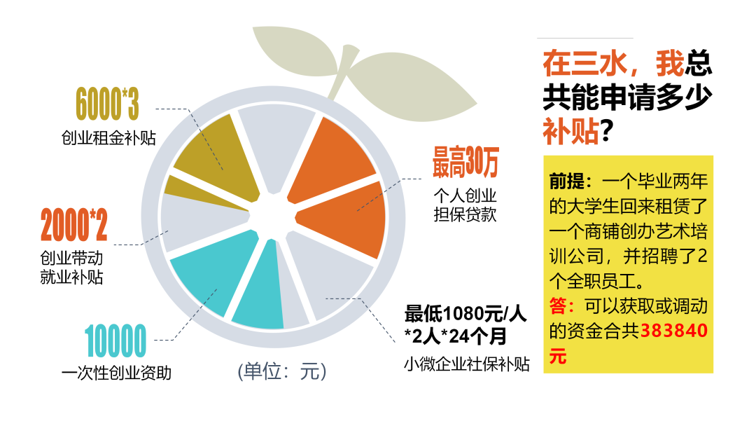 ☑资金礼包:一次性创业资助、创业资金补贴、创业带动就业补贴、小微企业社保补贴;