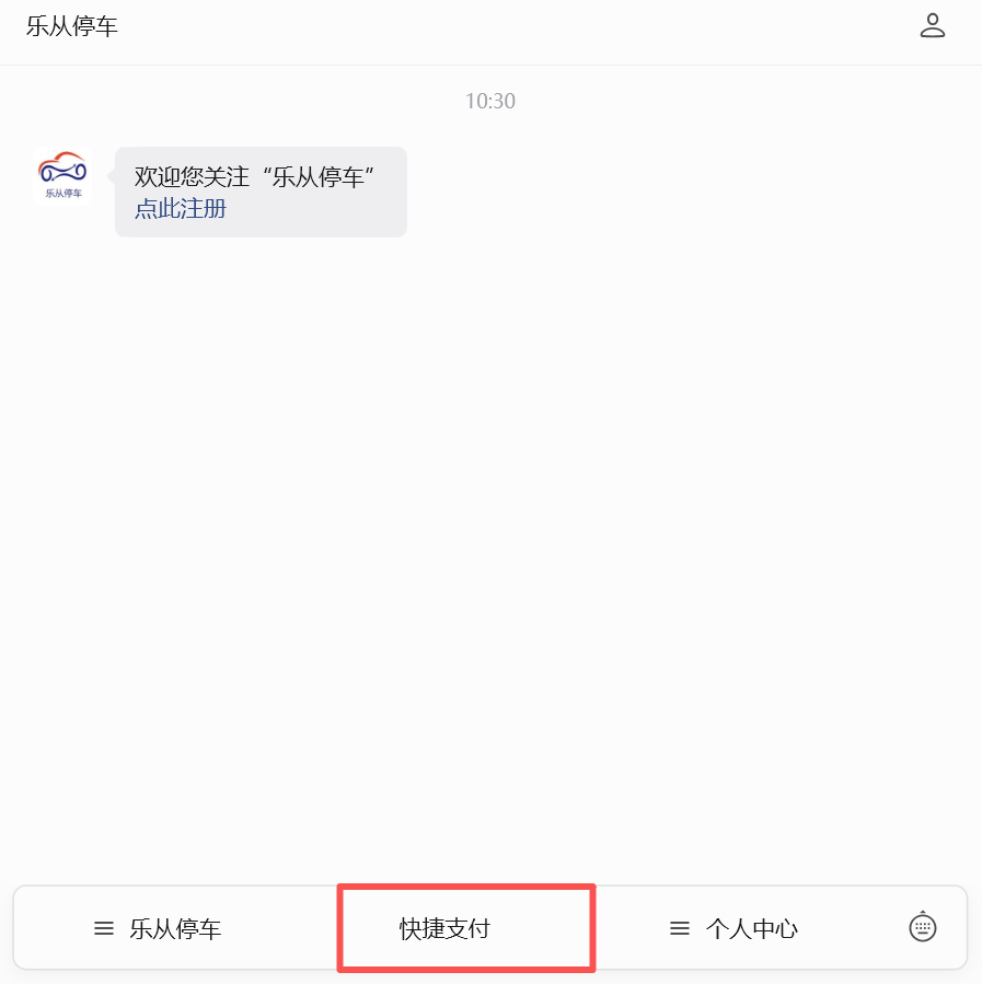 第一步:关注“乐从停车”公众号