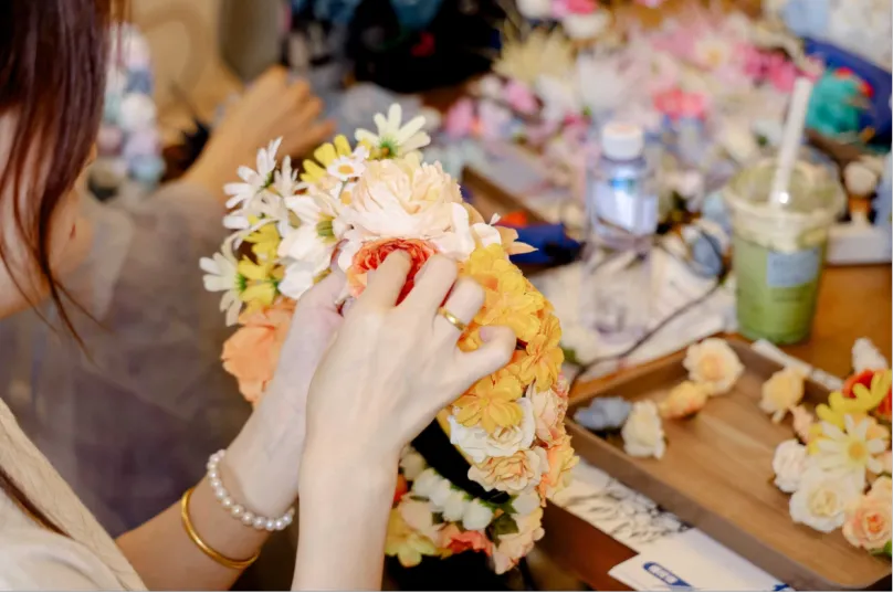 不想剧烈运动?那就做个优雅的手艺人!在专业老师的指导下,开启户外簪花DIY。仿真花搭配新鲜花材,亲手制作独一无二的春日头饰。做完直接戴头上,置身花海,随手一拍就是大片,朋友圈C位出道!