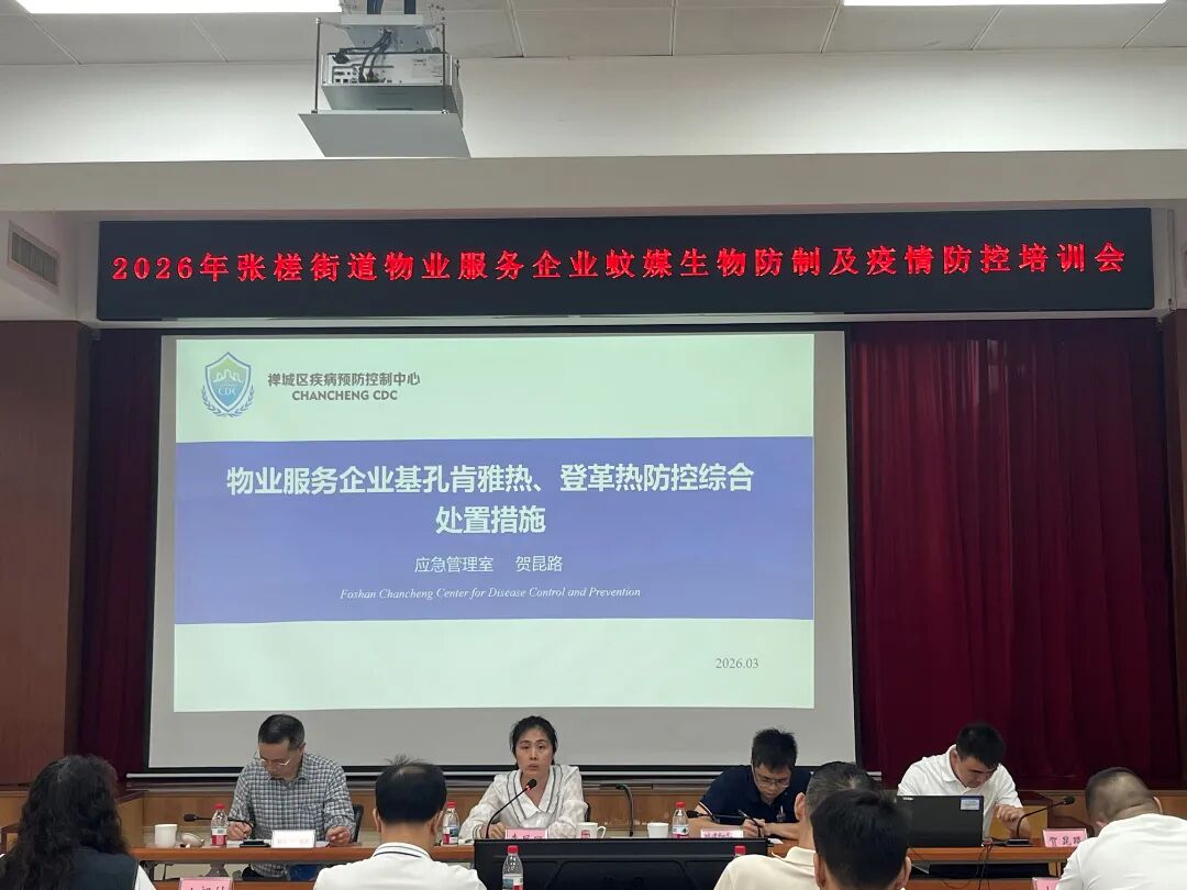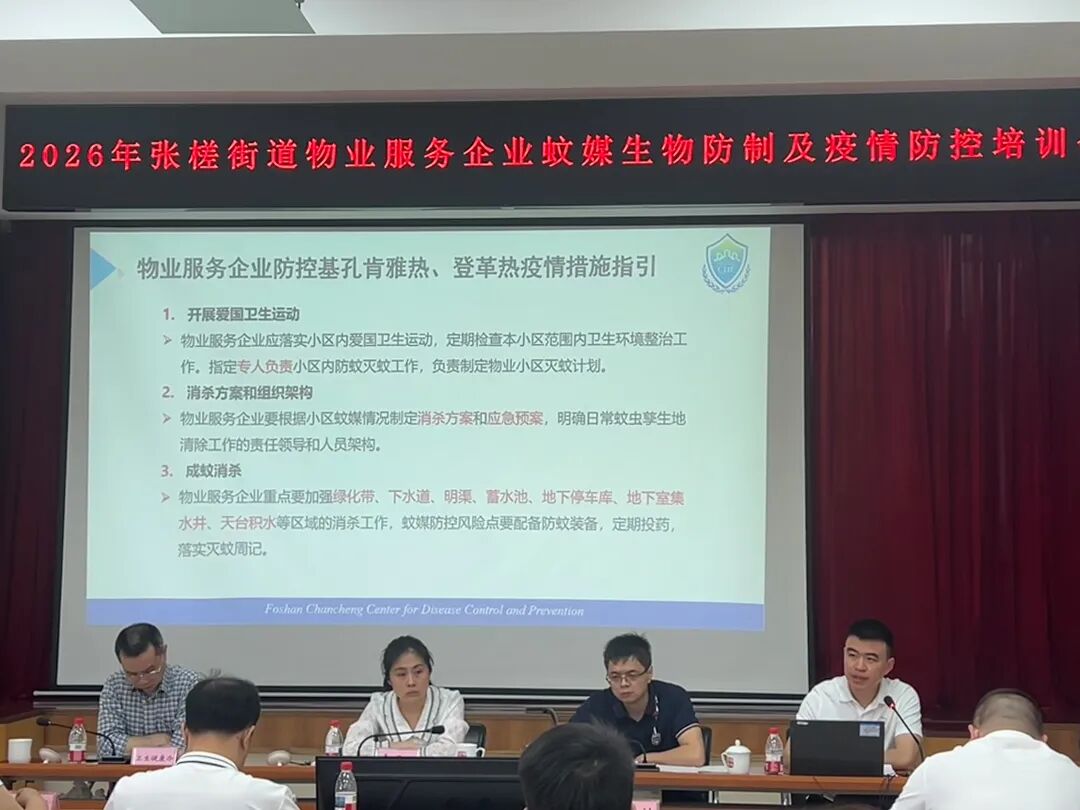 为深入贯彻落实上级关于公共卫生安全工作的决策部署,切实提升辖区物业服务企业蚊媒生物防制及疫情防控工作能力,2026年3月25日上午,张槎街道组织召开物业服务企业蚊媒生物防制及疫情防控专题培训会。街道各村居、辖区住宅、园区、工业园区等物业相关负责人共计140余人参会,共同学习防控知识,凝聚起群防群控、齐抓共管的工作合力。