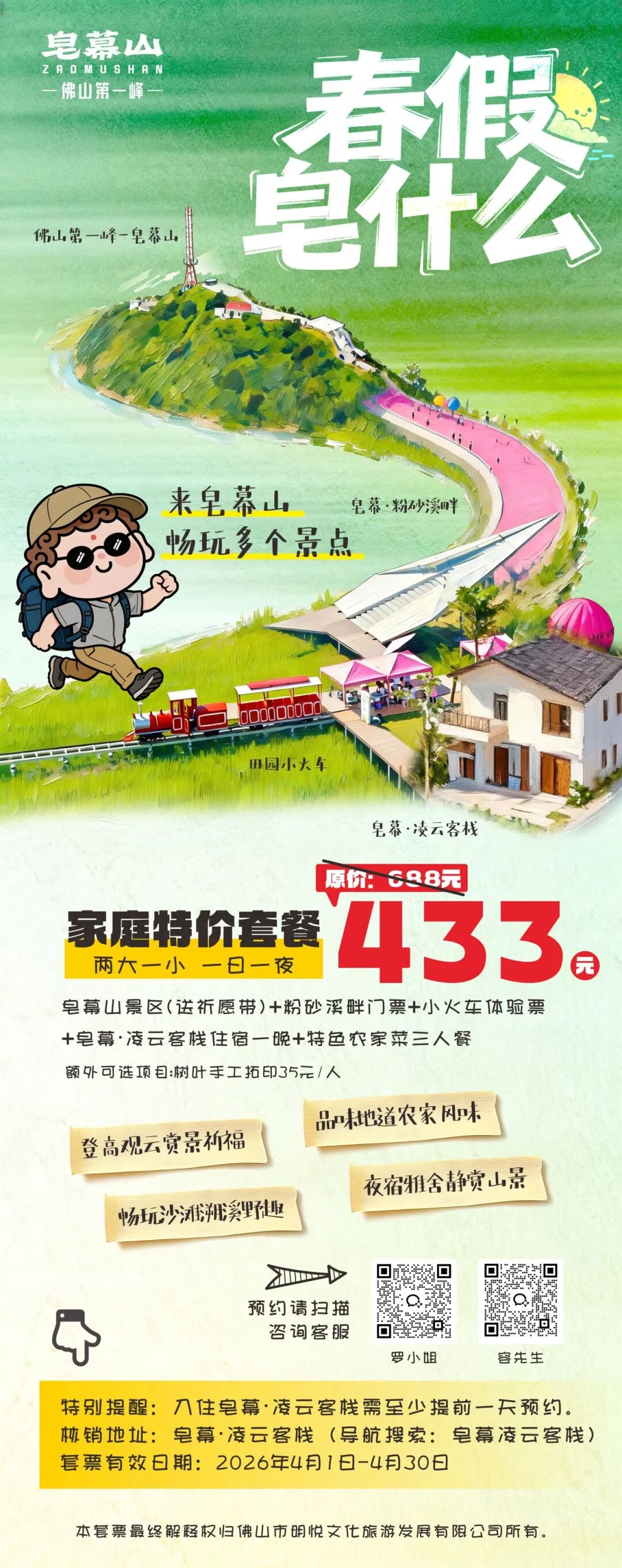 告别选择困难症,皂幕山的两个套餐总有一款适合你!带上家人,来这里收获欢笑、美食和自然野趣吧!立即扫码/点击链接预约,锁定春假专属福利吧晚了就没啦!