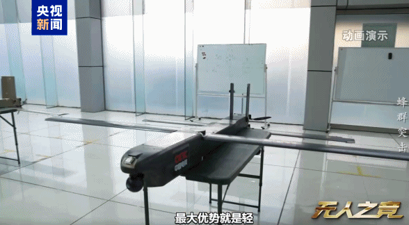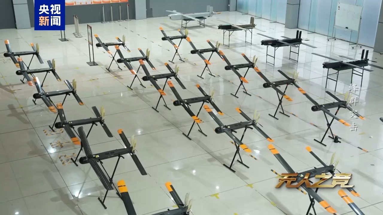 记者 孙新:这些大小不一的装备就是蜂群无人机的各种型号。