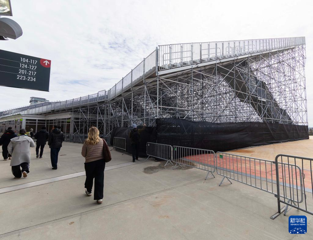 3月24日,媒体成员参观加拿大多伦多体育场的一处临时露天看台。