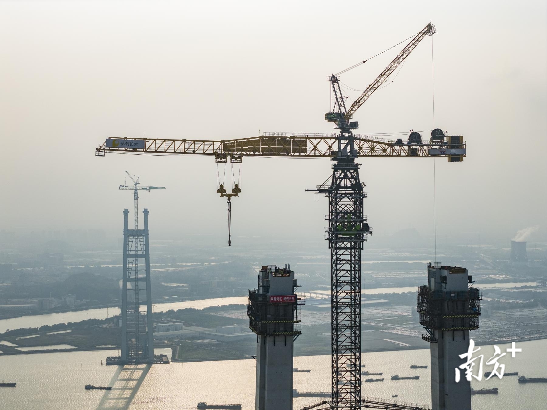 狮子洋通道项目关键控制性工程狮子洋大桥东、西主塔完成封顶,转入上部结构施工阶段。