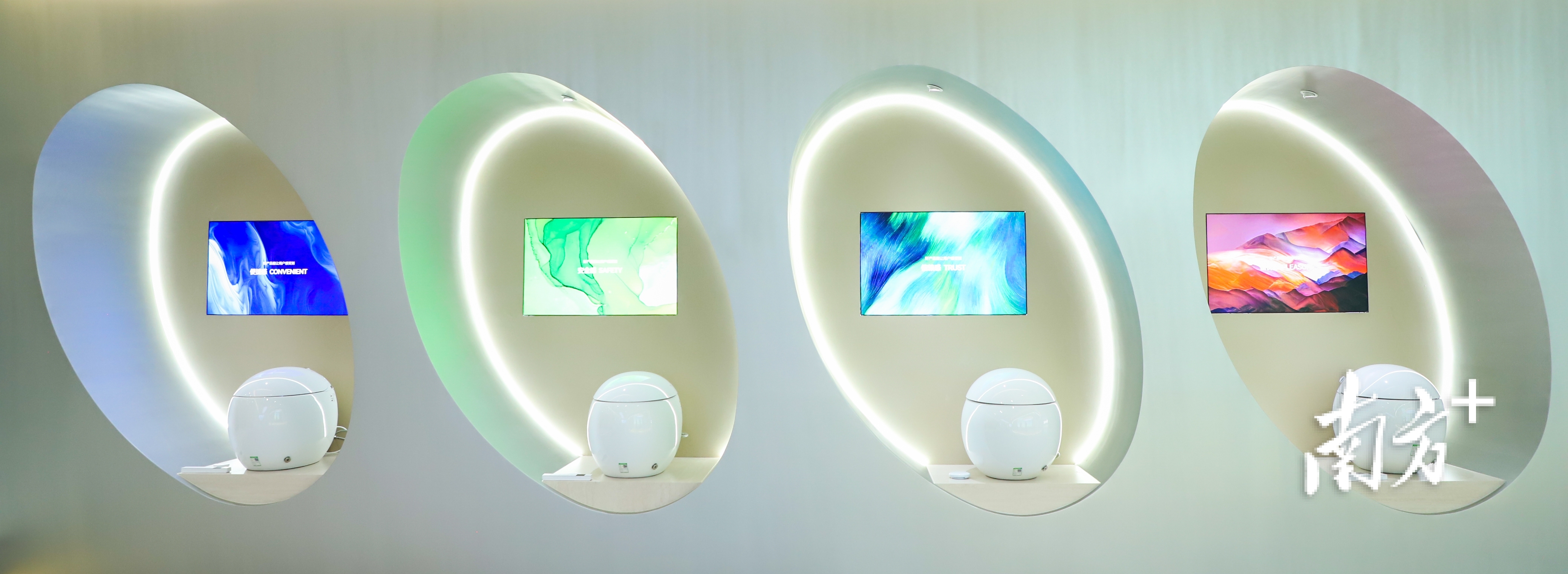 广东海煌厨卫科技则将人体工程学与智能科技深度融合,打造兼具实用性与舒适性的核心产品。该企业销售经理陈慕青介绍,其亮点产品具备适配人体臀部弧度的舒适座圈、360°刷圈泡沫盾防溅隔臭、香薰除臭、电解水喷杆自洁、紫外线杀菌、四季恒温座圈等功能。陈慕青坦言,以往外出参展只能携带部分产品,客户无法看到厂家的研发、生产等“一条龙”产业链,而家门口的展会恰好弥补了这一短板,“我们希望让更多人看到潮州企业的发展,潮州卫浴企业的马桶也会越做越好。”