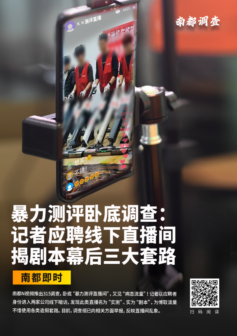 南都N视频《暴力测评卧底调查:记者应聘线下直播间,揭剧本幕后三大套路》迎新进展,两家涉事公司被市场监管部门立案调查!今年“315”前夕,南都记者以应聘者的身份进入湖南长沙两家公司线下卧底调查近10日,曝光此类直播间以“实测”之名,为博取流量不惜使用各类手段造假,获中国记协点赞“监督有力”。3月25日,长沙市开福区市场监管局向南都记者反馈,已对两家涉事公司立案调查。