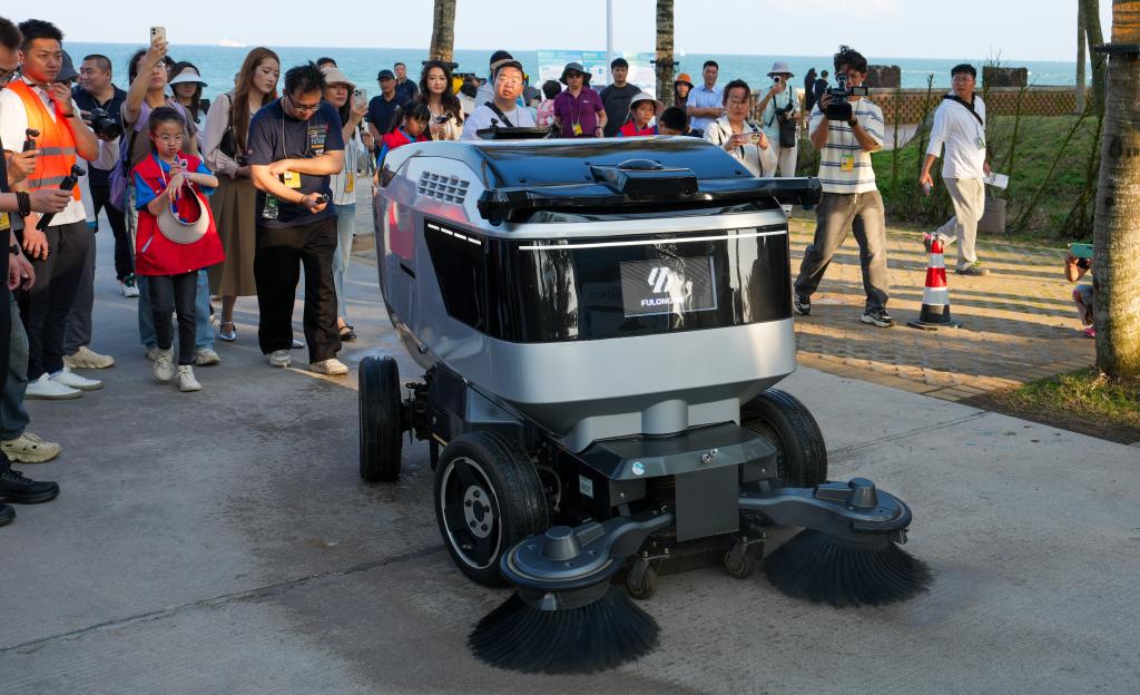 3月23日,智能清扫机器人在海南省琼海市博鳌镇作业。新华社记者 杨冠宇 摄